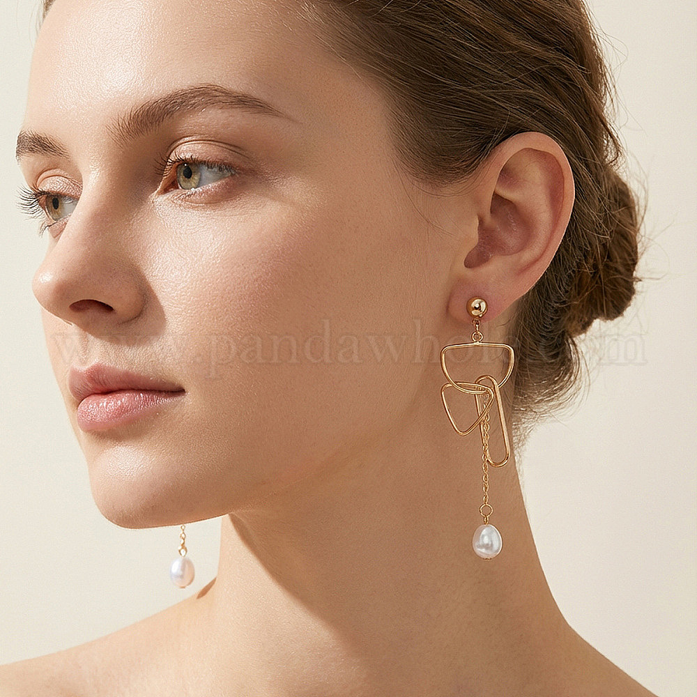 • Золотой Серьги-гвоздики из сплава и искусственного жемчуга с кисточками, г-образный, золотые, 95 мм