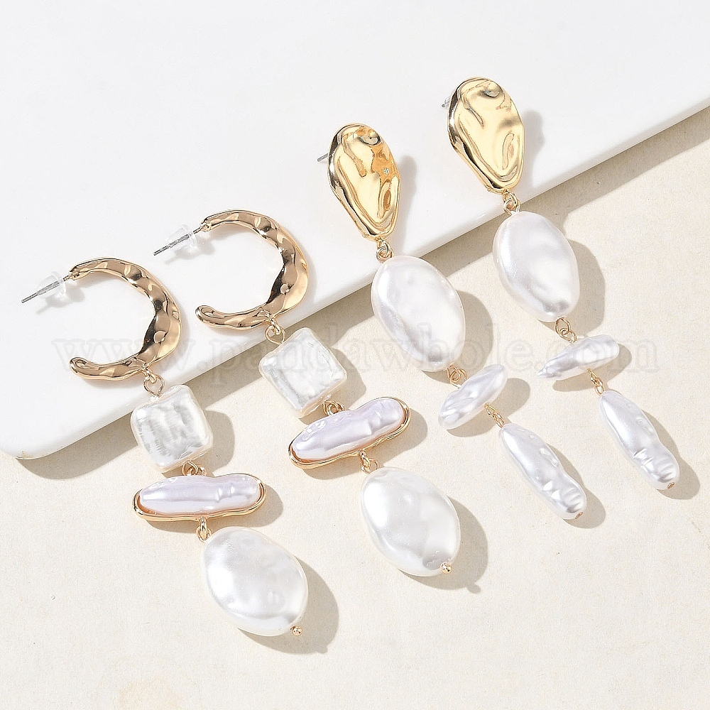 Серьги-гвоздики из цинкового сплава, с пластиковой жемчужины, золотые
