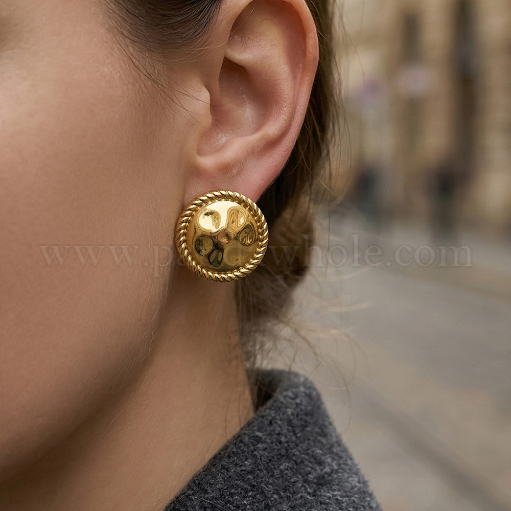 • Золотой 304 из нержавеющей стали серьги, кованая текстура плоская круглая, золотые, 24.5x25.5 мм