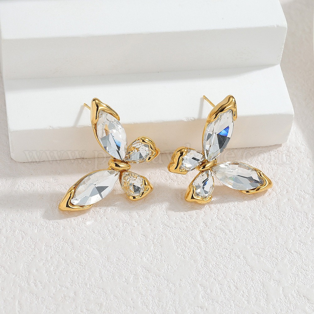 304 Серьги-гвоздики из нержавеющей стали с инкрустацией кубическим цирконием для женщин, бабочка