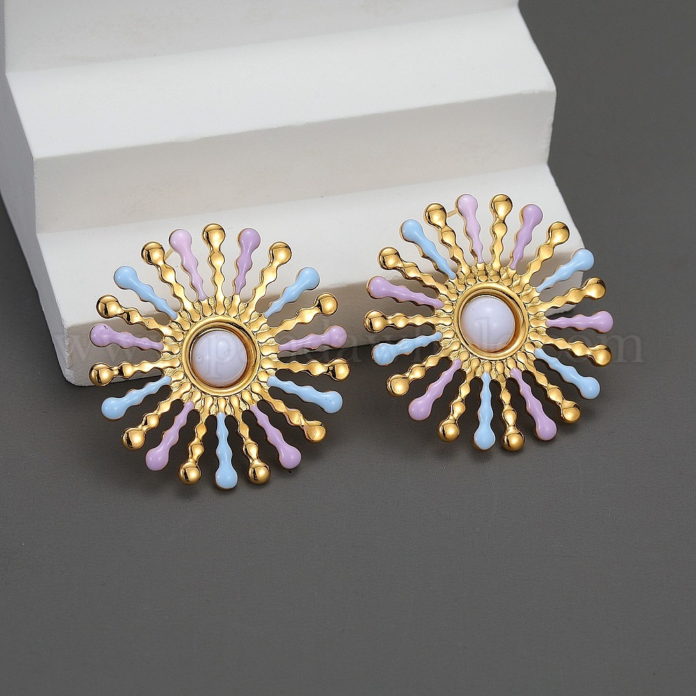 304 серьги-гвоздики из нержавеющей стали для женщин, цветок, с эмалью и смолой