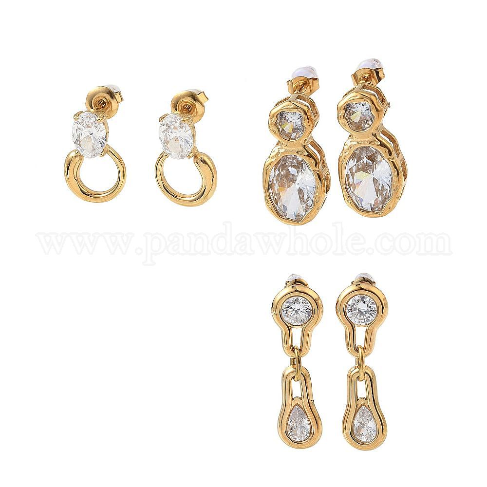 304 Серьги-гвоздики из нержавеющей стали с прозрачными кубическими циркониями, золотые