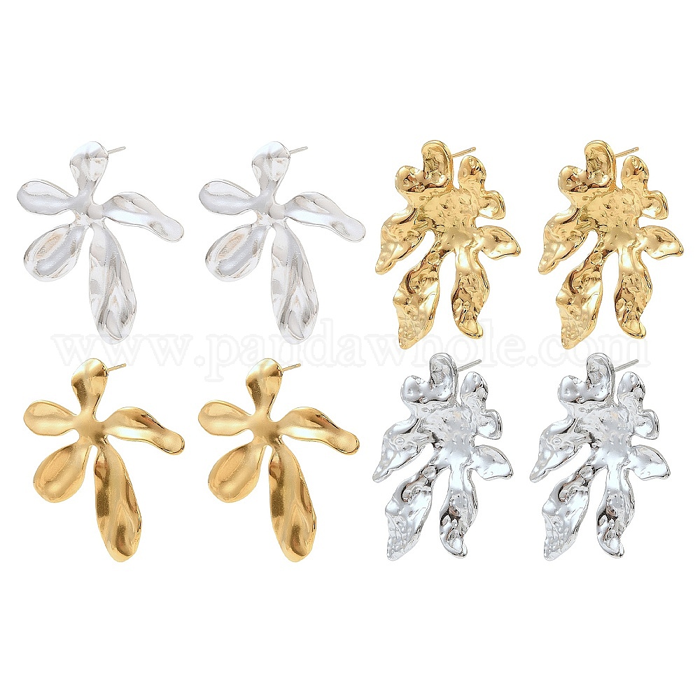 • Нержавеющая Сталь Цвет День святого Валентина 304 серьги-гвоздики из нержавеющей стали, текстурированный цветок, цвет нержавеющей стали, 40x28 мм