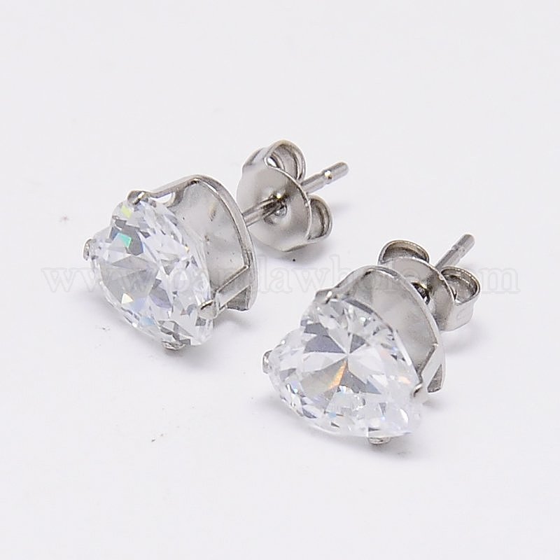 Кубического циркония уха шпильки, с основанием из нержавеющей стали, сердце, штифты : 0.7 мм