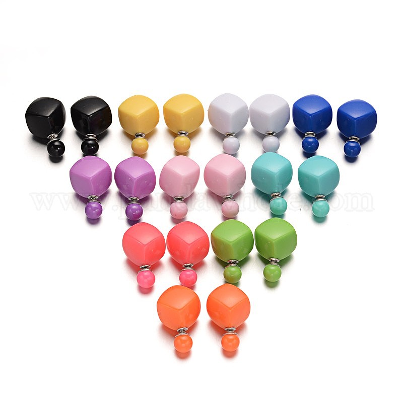 Двухсторонняя акриловая куб и круглые шпильки уха, с платиновым стальным штифтом, 28~29x14.5x15.5 мм, мяч: 8 мм, Pin: 0.6 мм