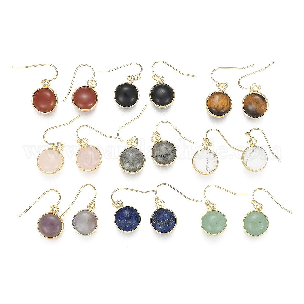Плоский круглый золотой тон латунь камень болтаться серьги, 27 мм , штифт: 0.7 мм