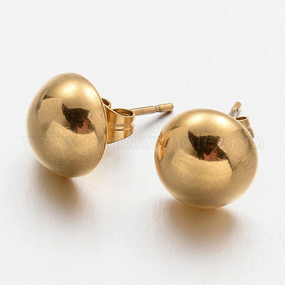 • Золотой 304 из нержавеющей стали уха шпильки, гипоаллергенные серьги, полукруглые / купольные, золотые, 16.5x8x5 мм, контактный: 0.8 мм