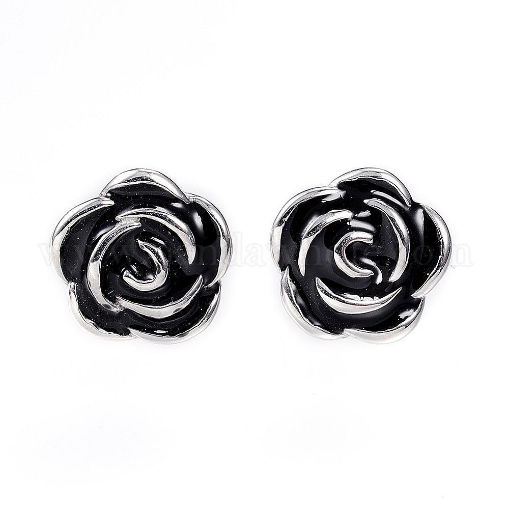 • Нержавеющая Сталь Цвет 316 серьги-гвоздики из хирургической нержавеющей стали, с эмалью, цветок, цвет нержавеющей стали, 13 мм , штифт: 0.8 мм