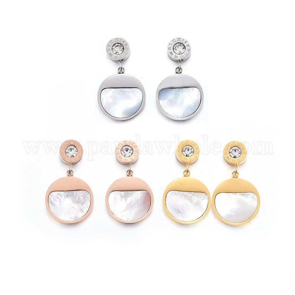 304 из нержавеющей стали болтаться серьги, горный хрусталь и оболочки, плоско-круглые