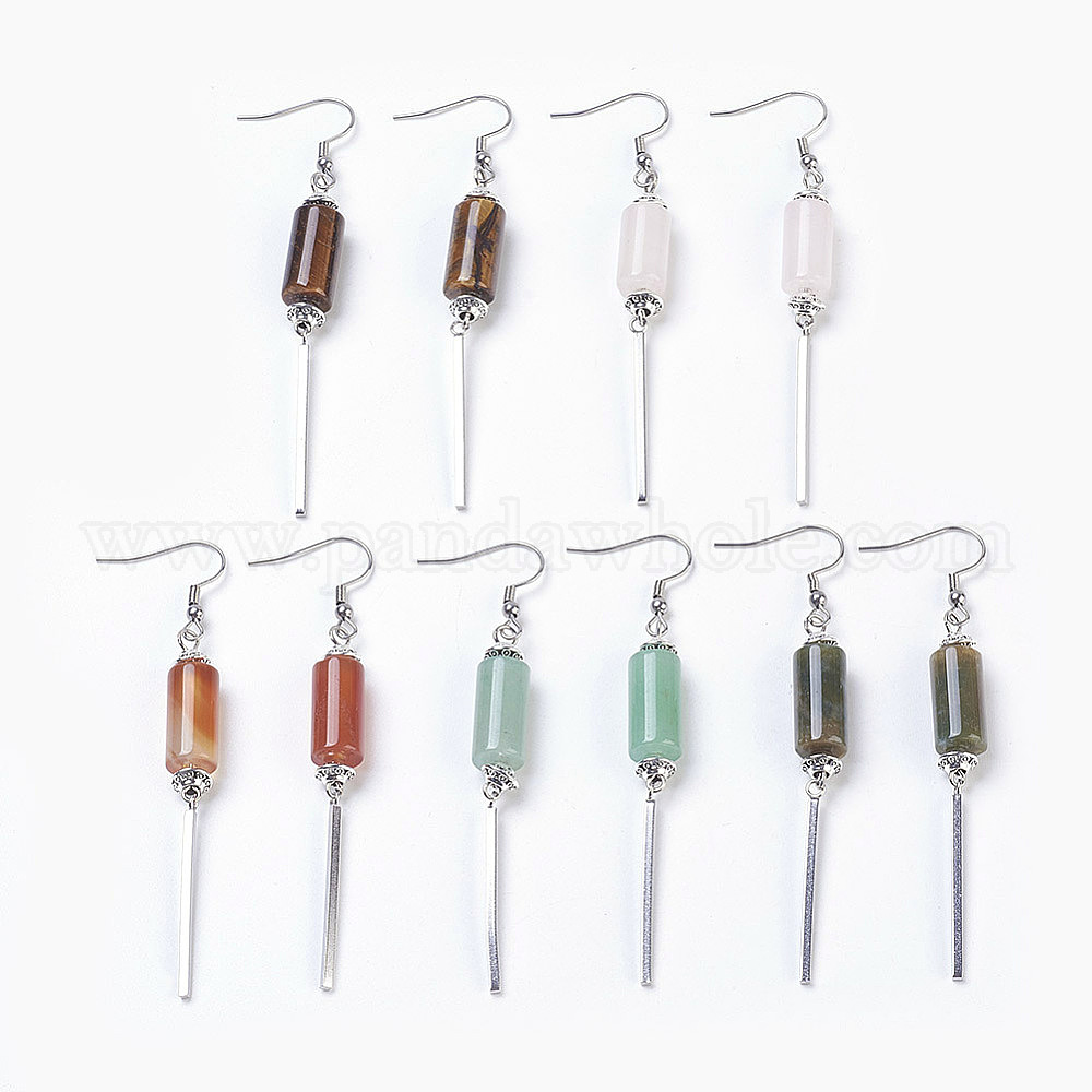 Болтаться серьги природный драгоценный камень, с проставками из сплава и 304 из нержавеющей стали, столбец и прямоугольник, платина и старинное серебро