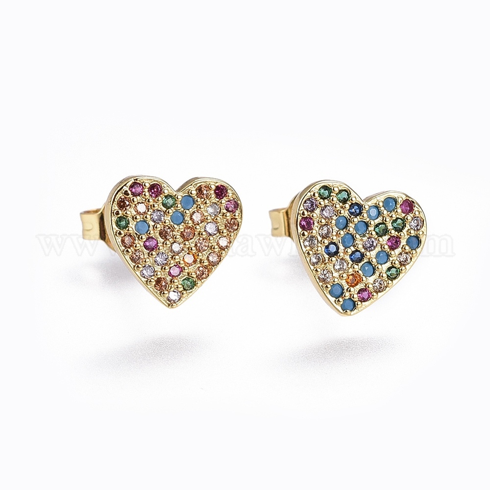 Латунные микро проложить серьги стержня кубического циркония, сердце, золотые