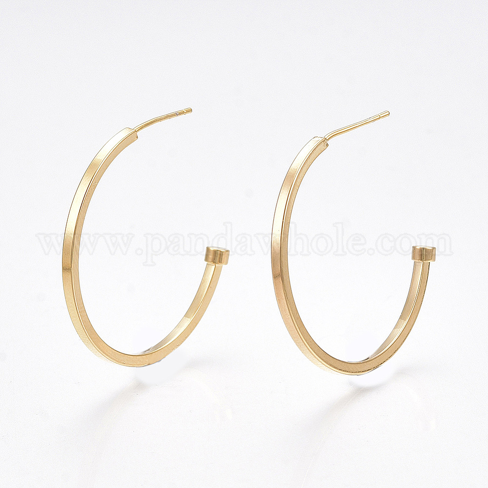 • Настоящее золото 18K Латунь серьги, серьги-кольца, без никеля , реальный 18 k позолоченный, 30x30 мм, штифты : 0.8 мм