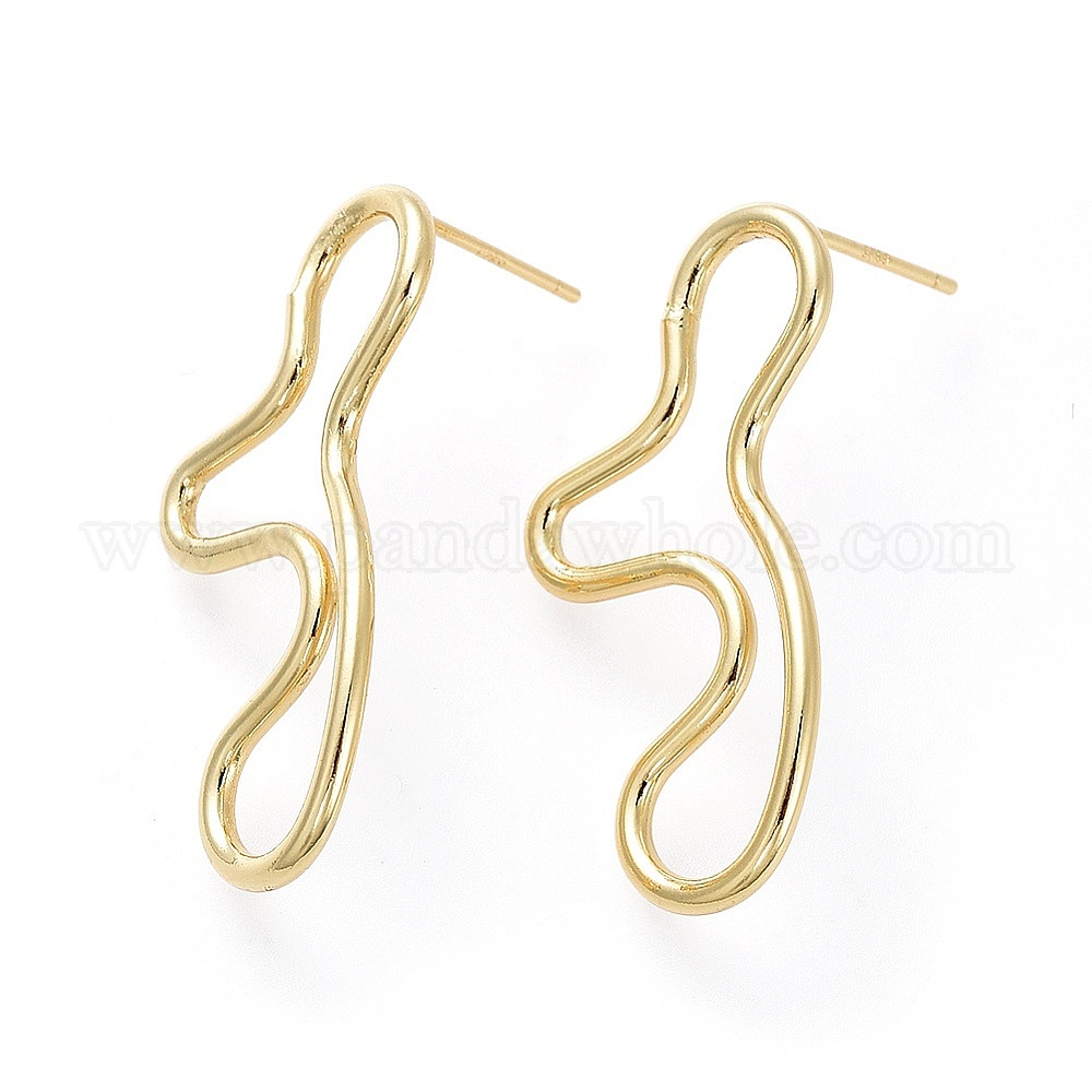 • Золотой Латунь серьги, с ушными гайками и 925 булавкой из стерлингового серебра, золотые, 30.5~31x14~15 мм, штифты : 0.7 мм