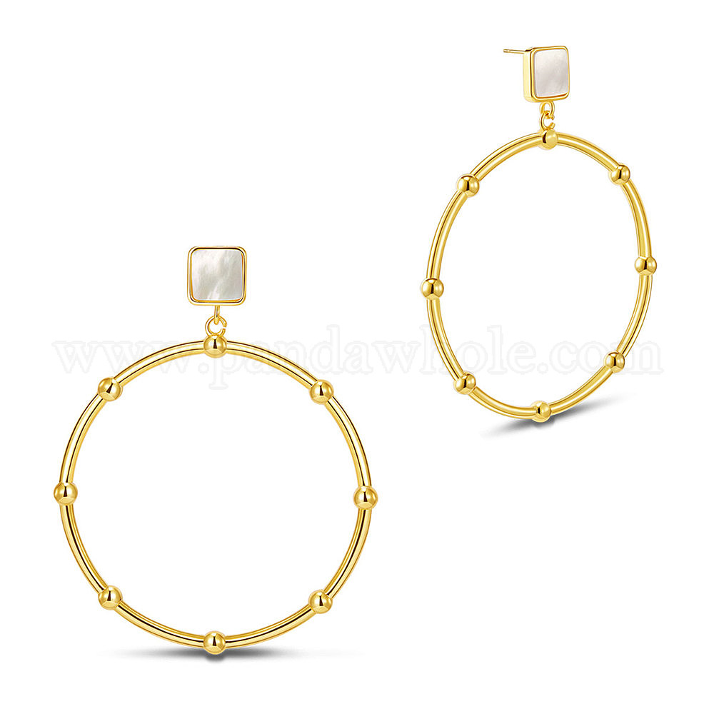 Латунь серьги, Квадрат и кольцо, реальный 18 k позолоченный