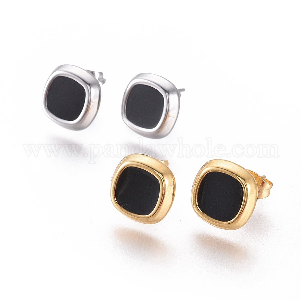 304 из нержавеющей стали серьги, с эмалью и ушными орехами, ромб, чёрные