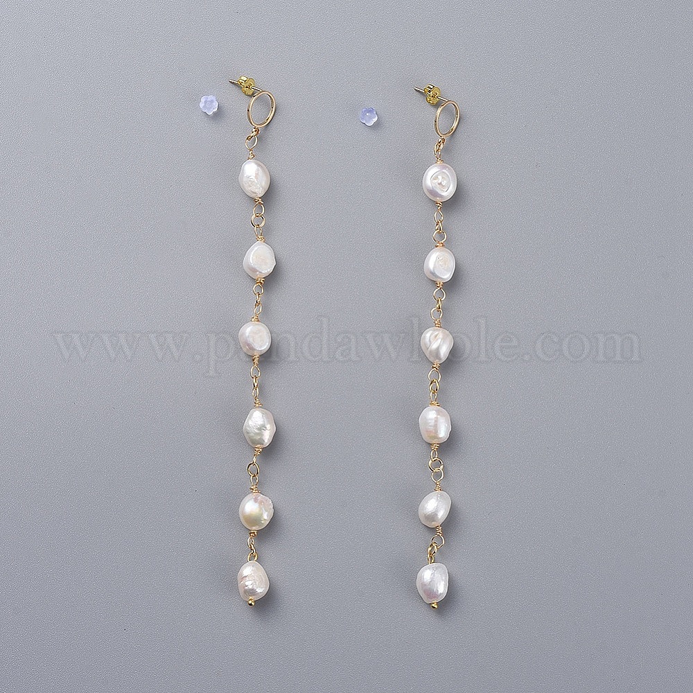 Серьги с натуральным культивированным пресноводным жемчугом, с латунными серьгами, пластмассовые / латунные гайки и картонная коробка