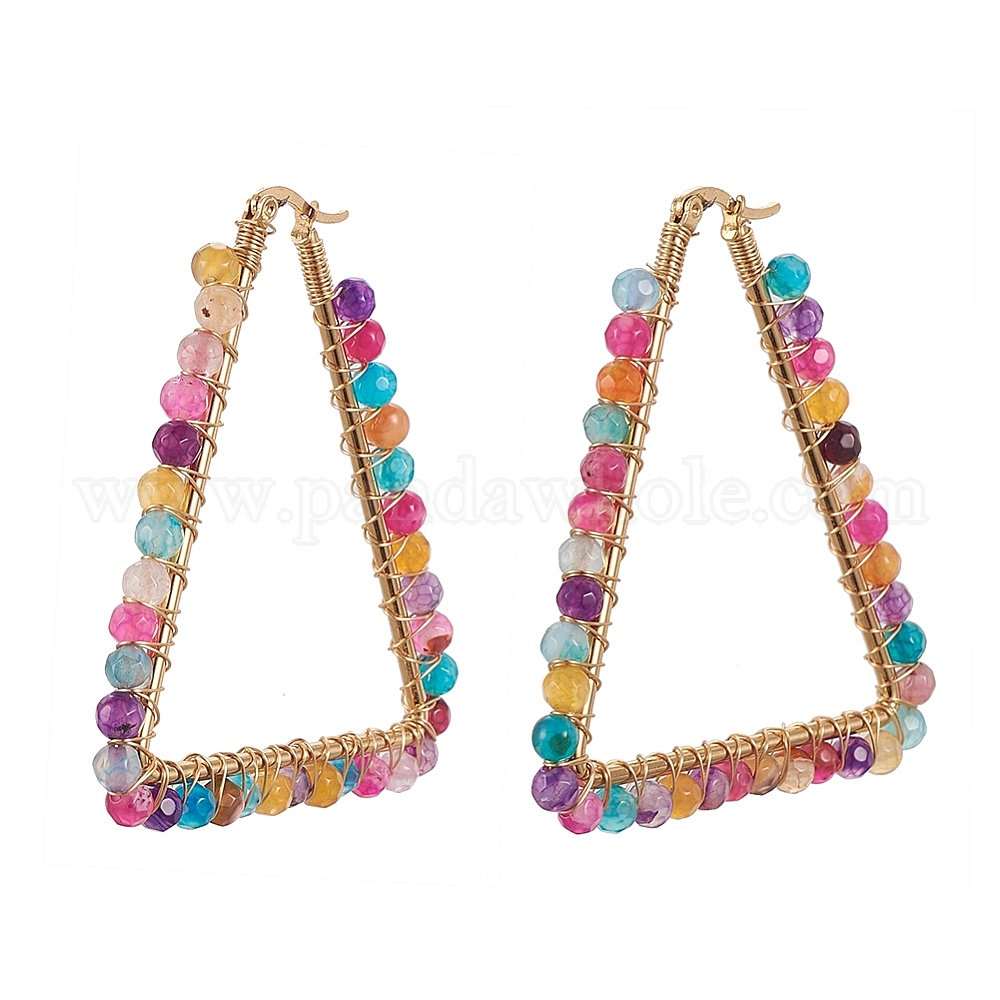 Серьги из 201 нержавеющей стали, с природными драгоценными камнями, треугольные