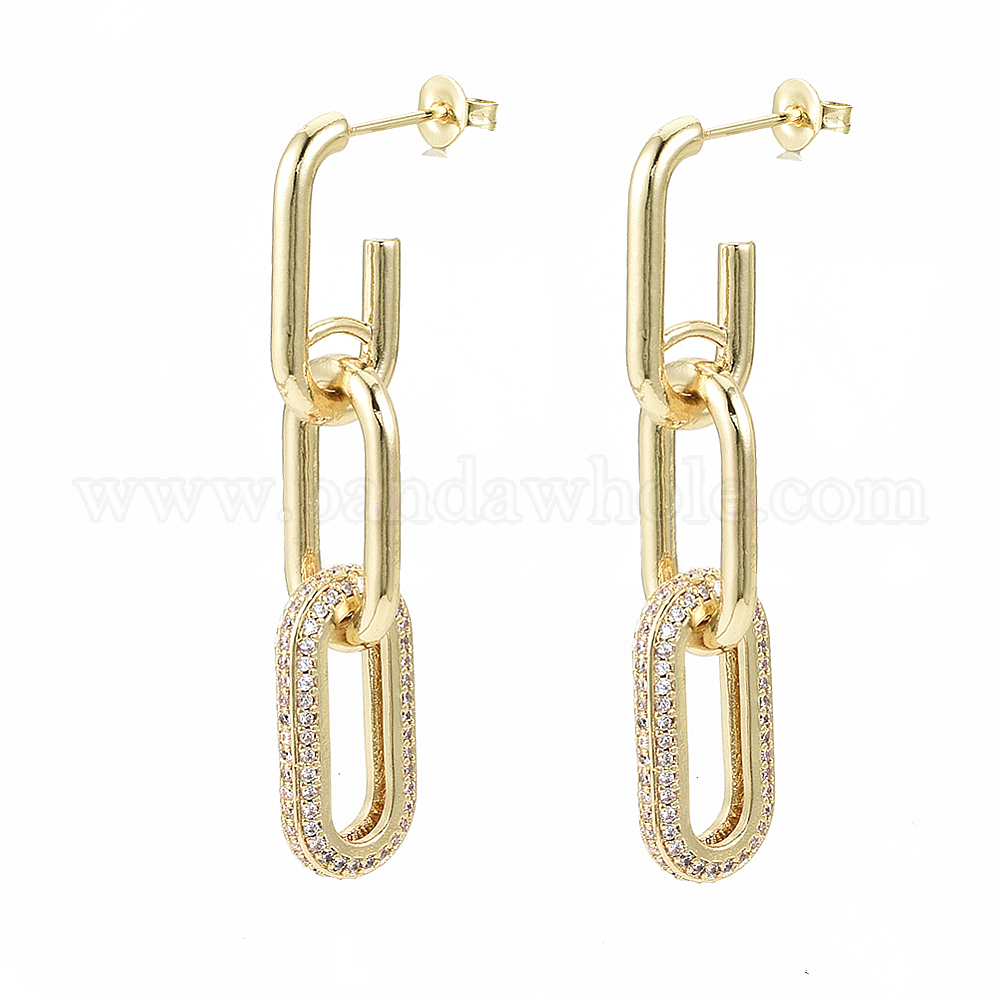 • Настоящее золото 18K Серьги-гвоздики с цирконом из латуни, с уха орехов, без никеля , Кабель цепи, реальный 18 k позолоченный, 48 мм, штифты : 0.7 мм