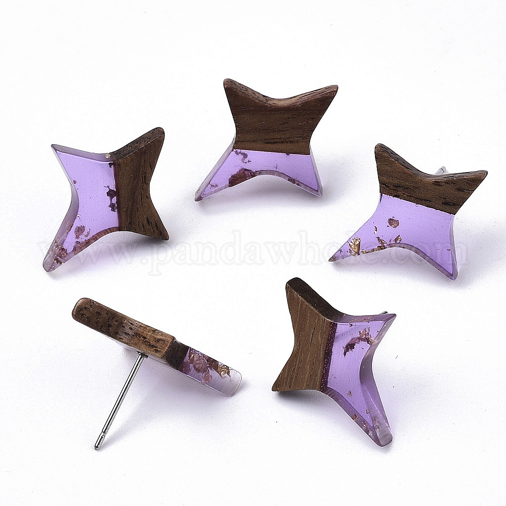 Серьги-гвоздики из прозрачной смолы и ореха, со 304 булавкой из нержавеющей стали и золотой фольгой, звезда