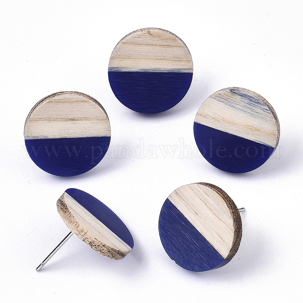 Серьги из смолы и дерева, с 304 штифта из нержавеющей стали, плоско-круглые