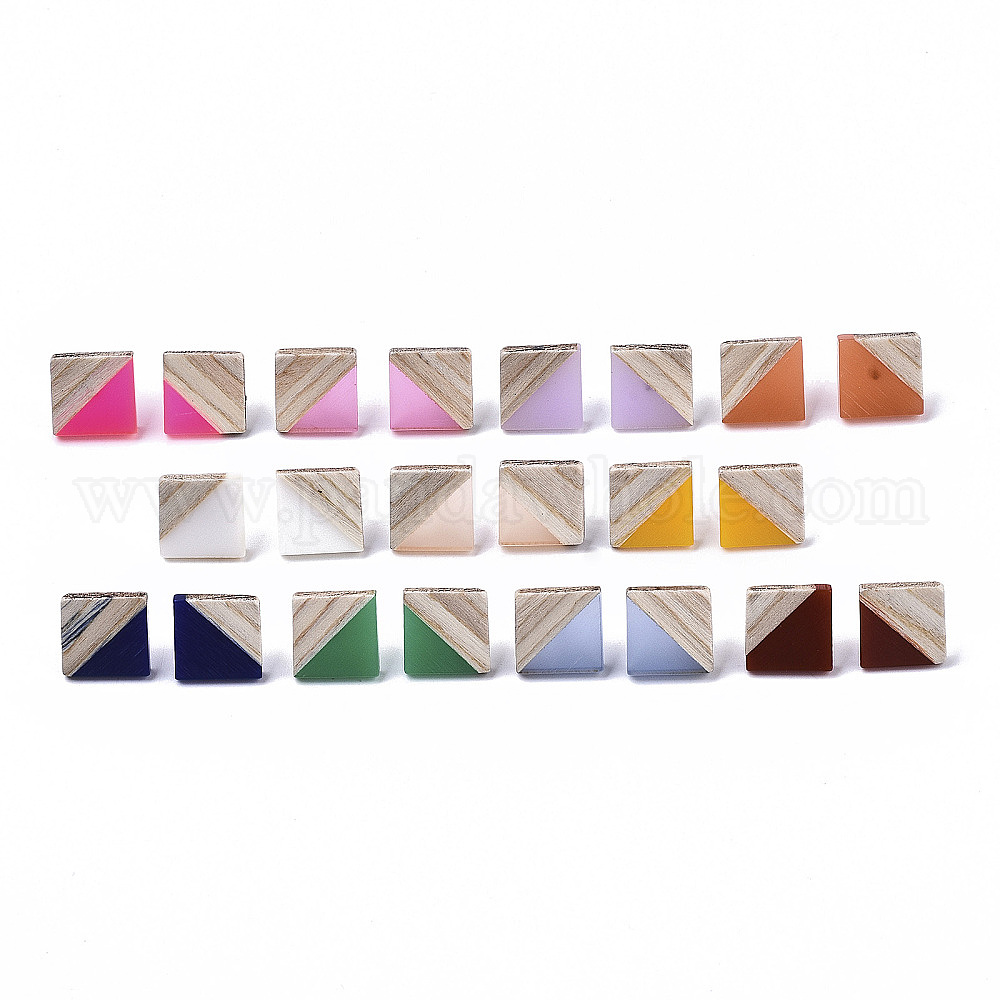 Серьги-гвоздики из непрозрачной смолы и дерева, с 304 штифта из нержавеющей стали, ромб