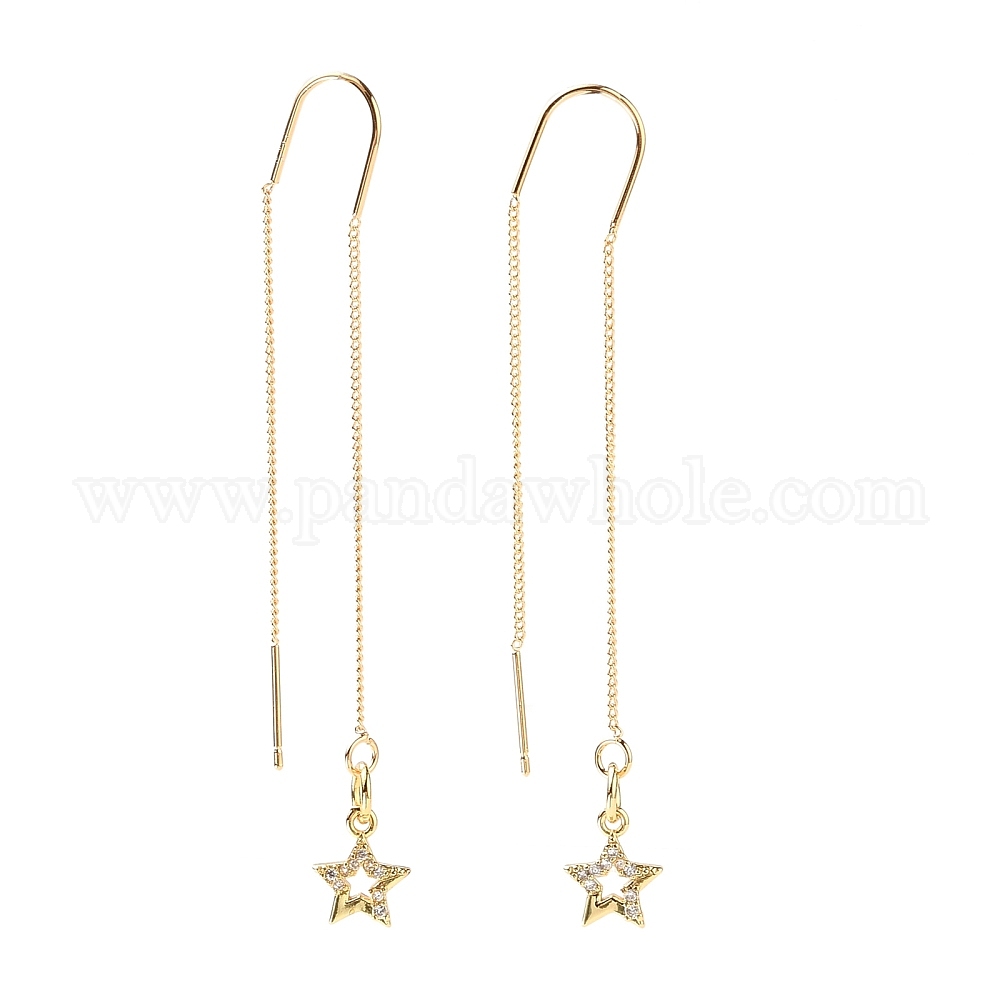 Латунные микропаве, прозрачные ушные нити из кубического циркония, серьги, звезда (0255X4)