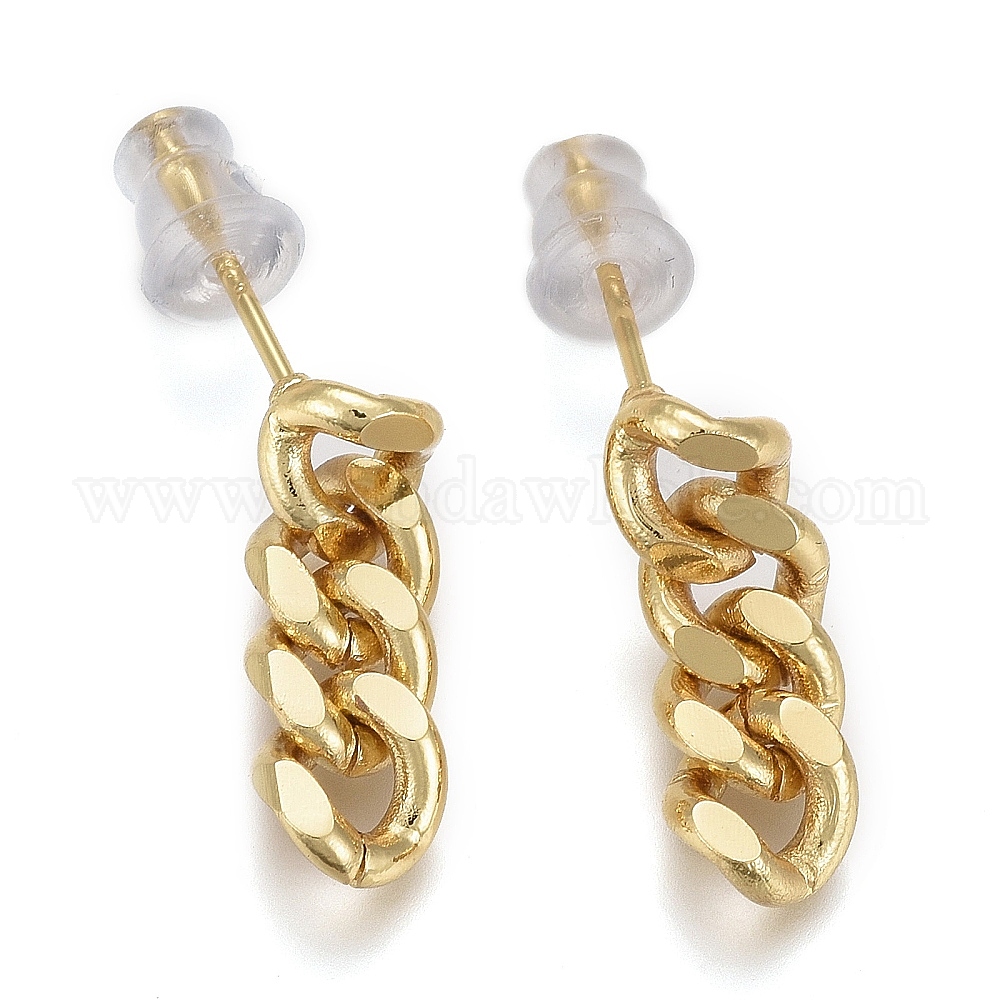 Серьги-гвоздики с цепочкой из латуни, граненые, с пластиковыми гайками уха, долговечный