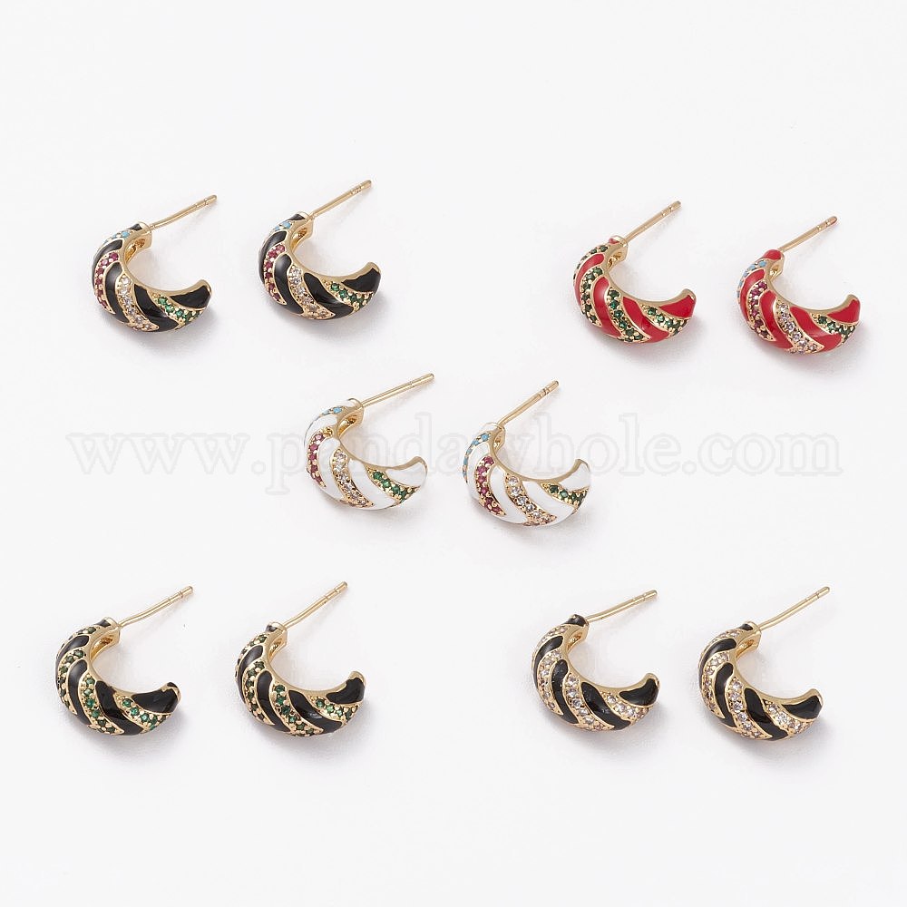 Серьги-кольца из латуни с микропаве и кубическим цирконием, серьги, с эмалью, долговечный, луна, золотые