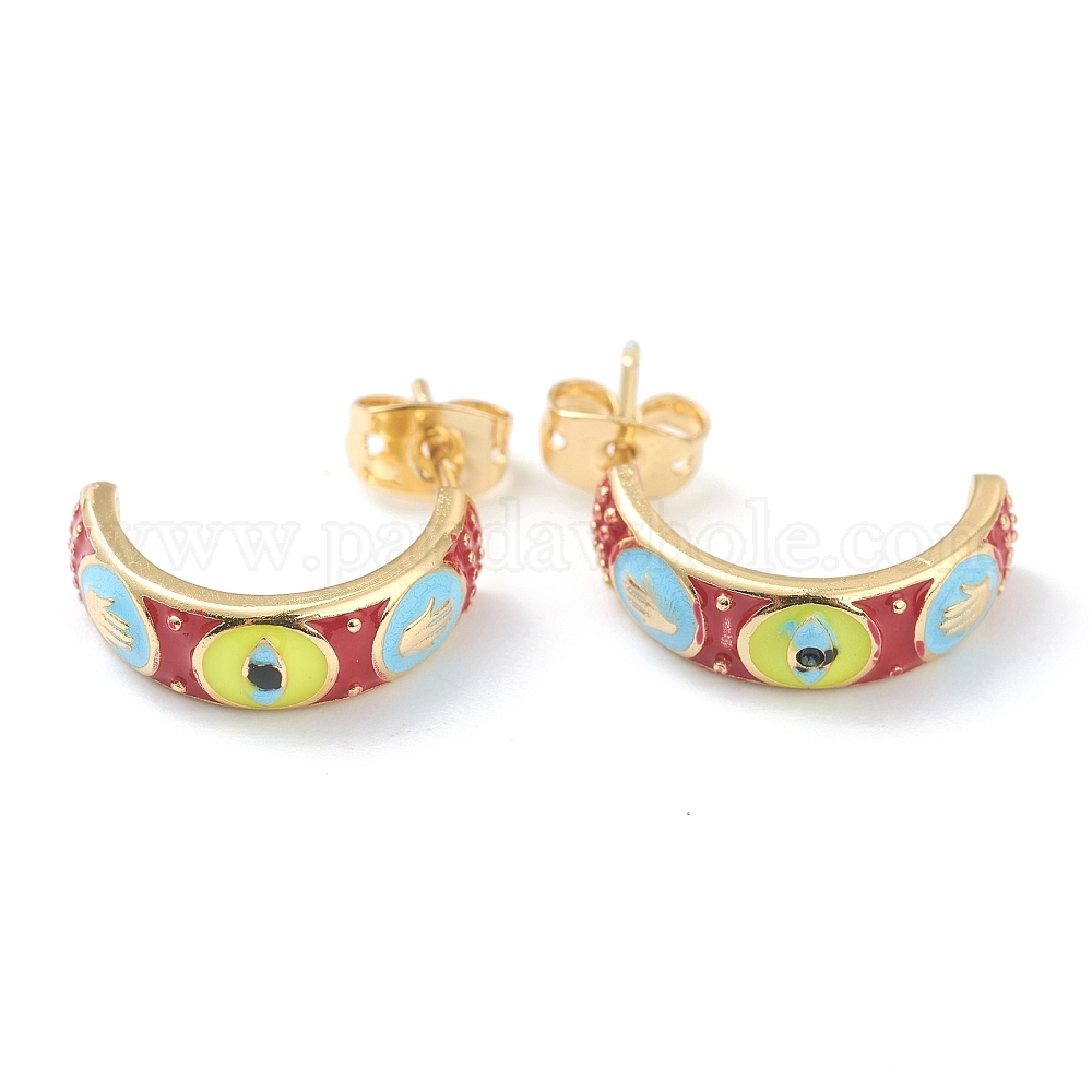 Полукруглые серьги-кольца из латуни с эмалью, с уха орехов, глаз, красочный