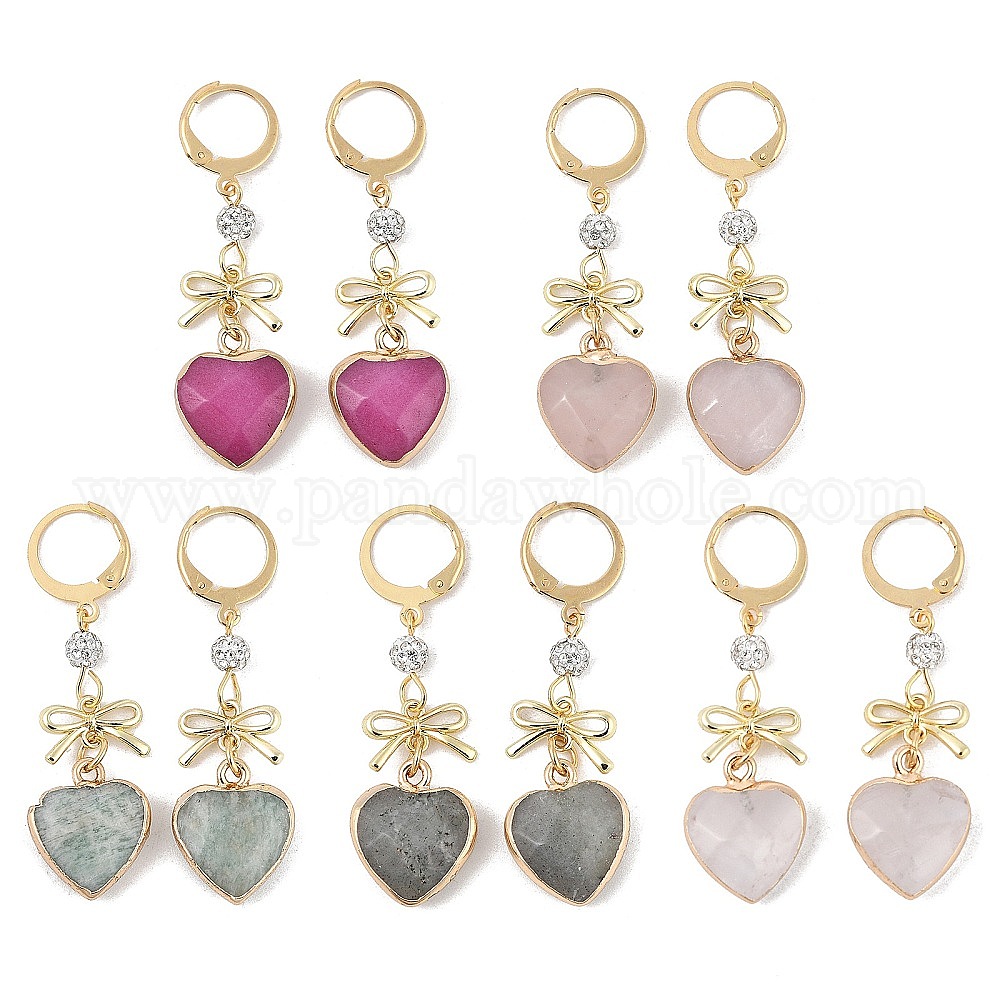 Серьги-капли в форме сердца и банта из натуральных драгоценных камней, 304 из нержавеющей стали Leverback серьги