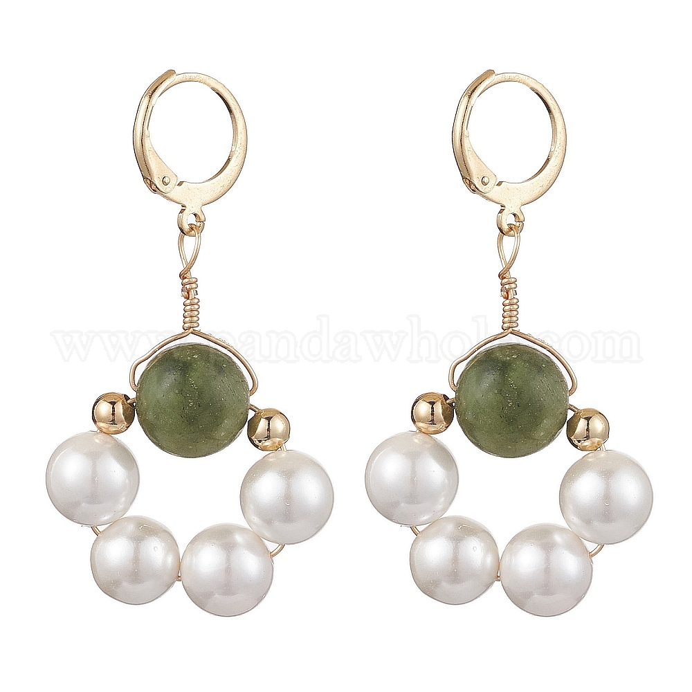 • Золотой Серьги с заклепками из ракушек с жемчугом и тайваньским нефритом, с 304 нержавеющей стали серьги крючки, цветок, золотые, 45x25 мм