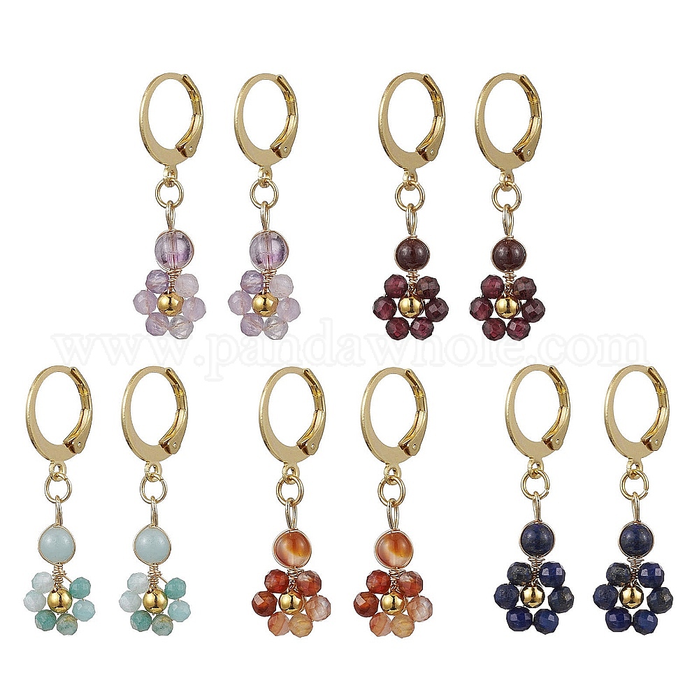 Драгоценный камень Leverback серьги, С 304 результатами из нержавеющей стали, цветок