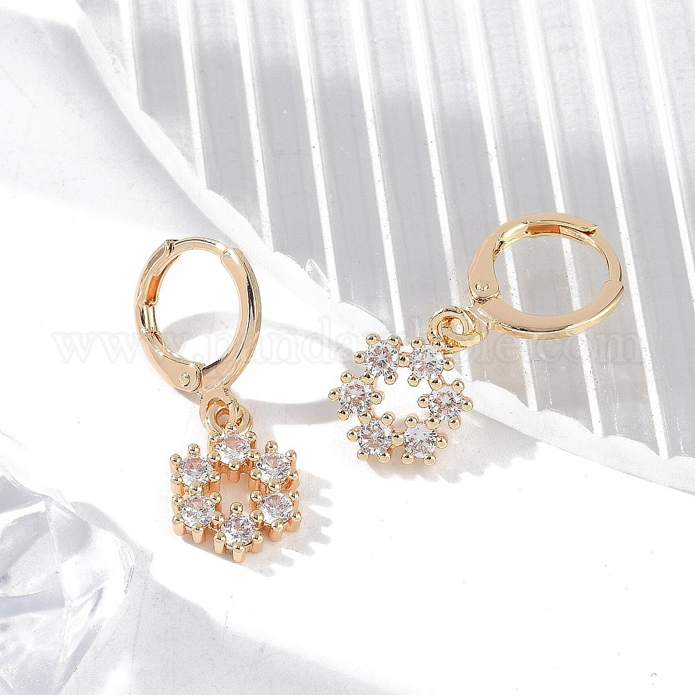 Серьги с застежкой-защелкой из латуни с прозрачным фианитом и прозрачным фианитом, стойки покрытие, долговечный, без свинца и без кадмия, цветок (02ZNKG)