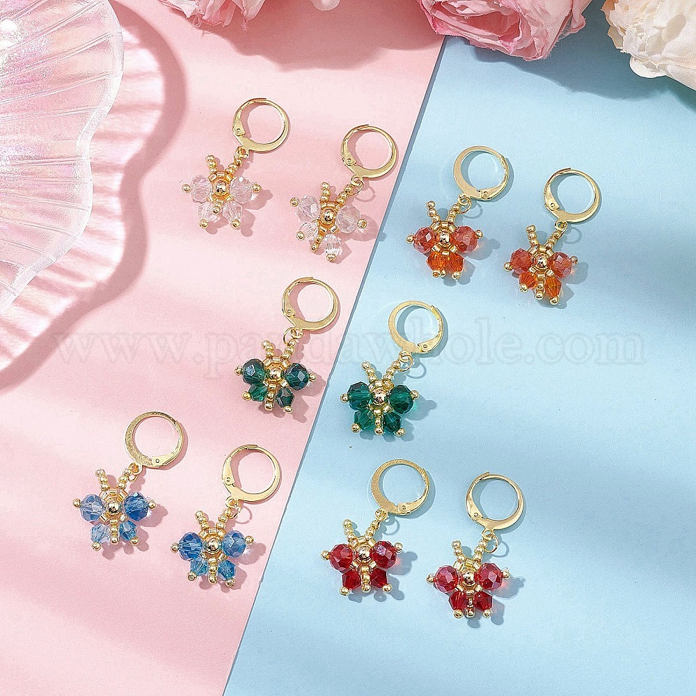 Бабочка 304 серьги из нержавеющей стали с застежкой-молнией для женщин, с подвесками из плетеного стекла в виде бабочек, золотые