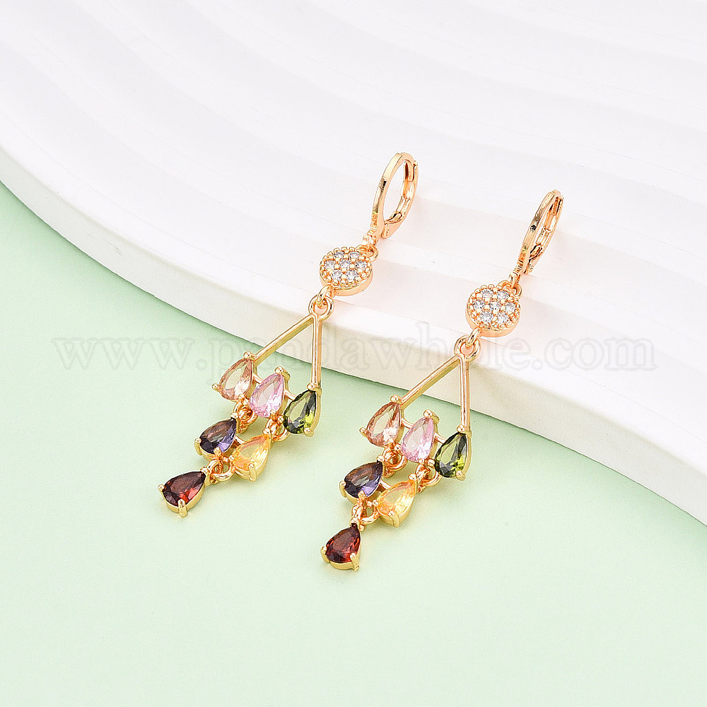 Серьги-капли из латуни с микропаве из кубических цирконий с подвеской-рычагом, долговечный, золотые