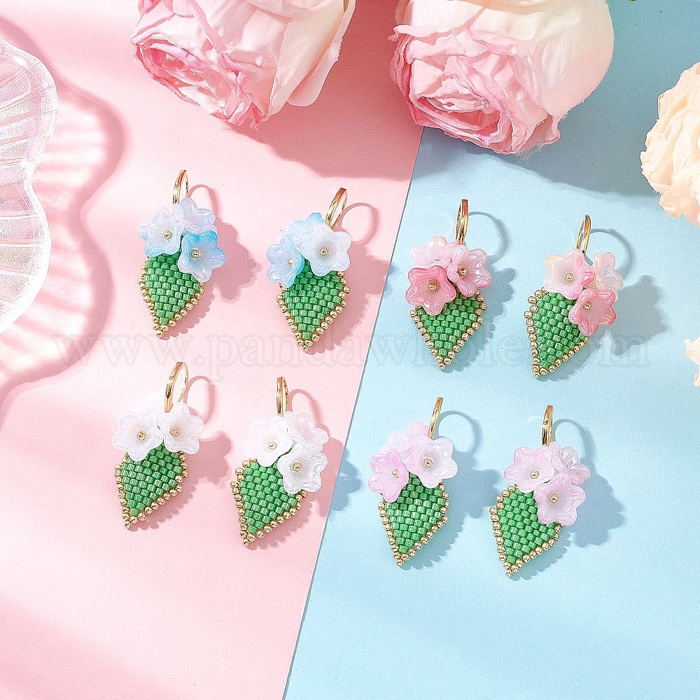 Серьги-цветы ручной работы из стеклянных бусинок с застежкой-молнией, с акрилом и 304 нержавеющей сталью, золотые