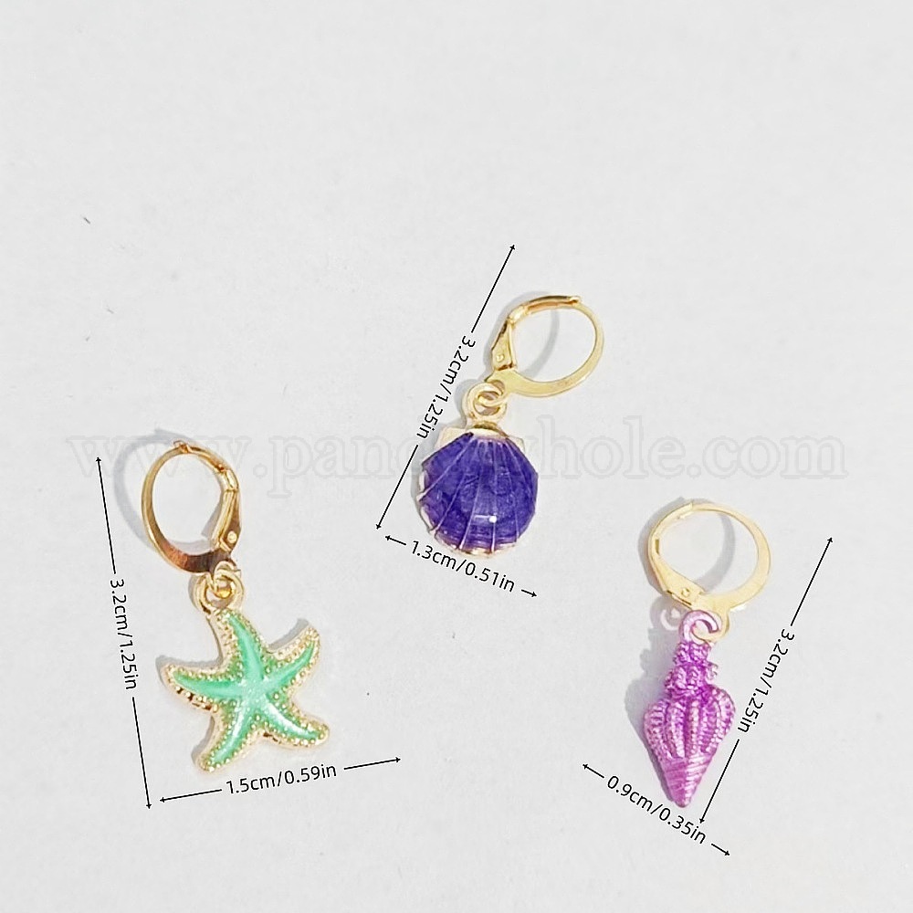 Серьги с эмалевым сплавом на морскую тематику, золотые