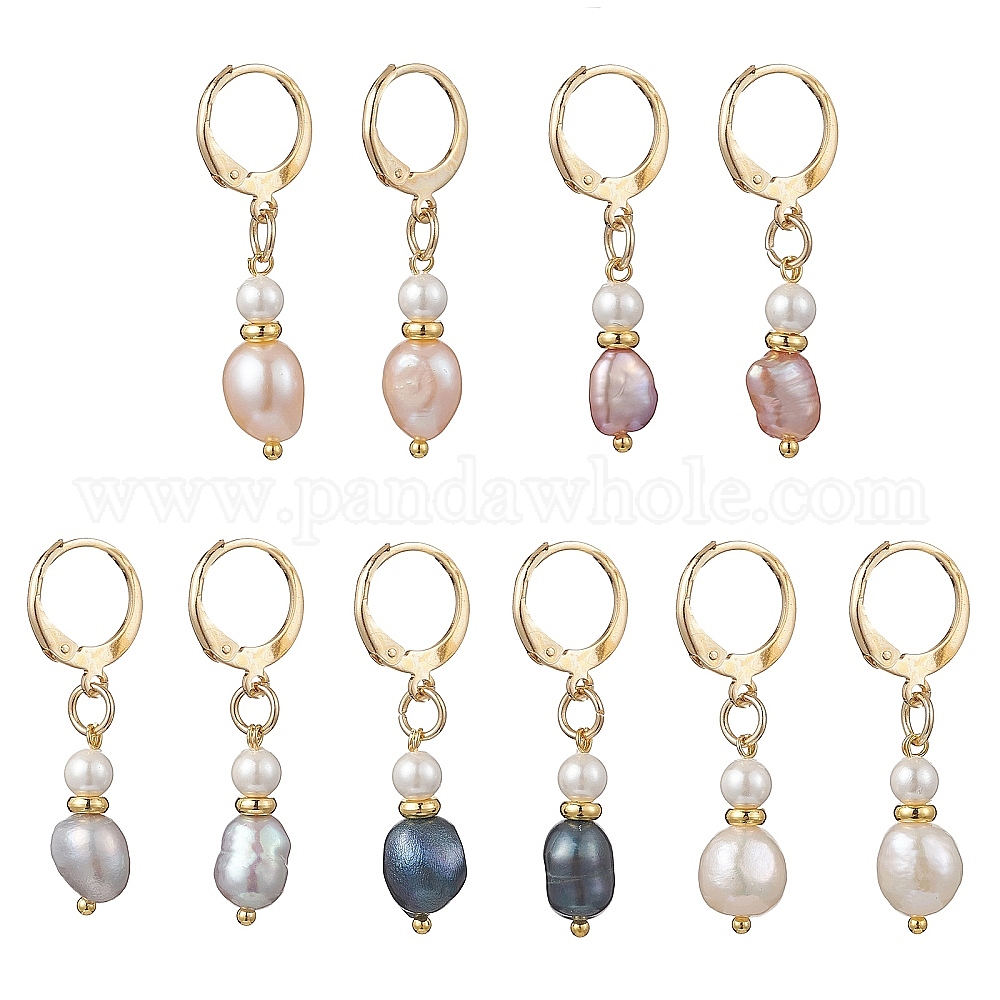 • (52) Непрозрачная лаванда Овальные серьги с натуральным пресноводным жемчугом из латуни с застежкой-рычагом, с жемчугом из раковины , золотые, разноцветные, 36x6~7 мм