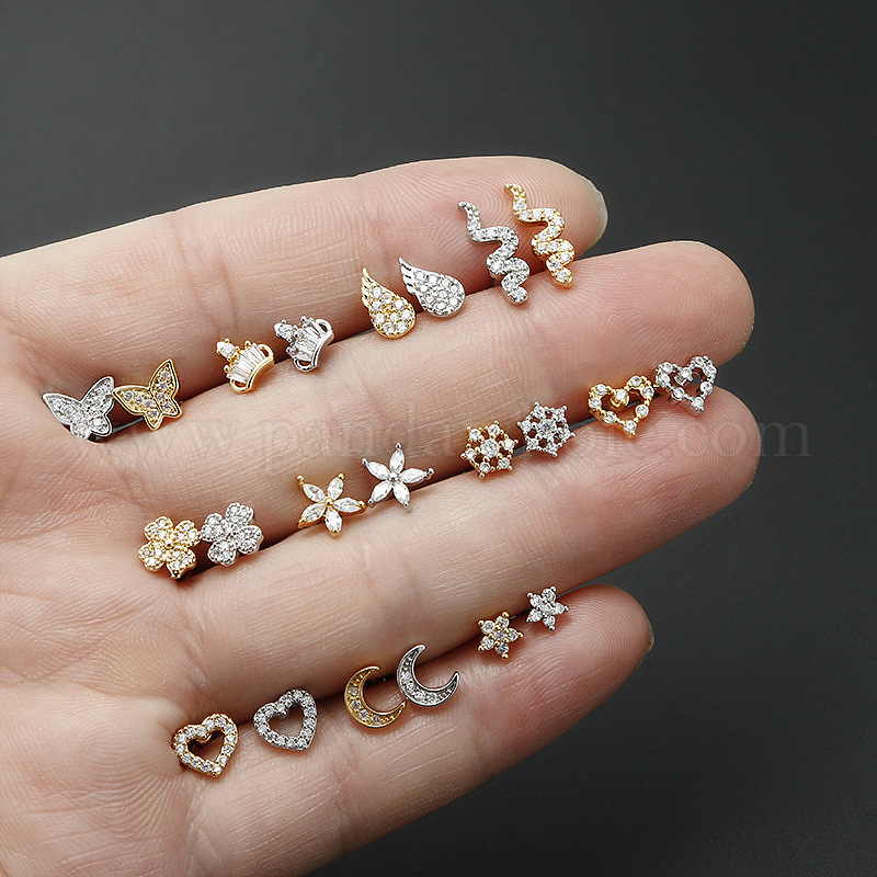 316l серьги-гвоздики из нержавеющей стали с микропаве из прозрачного кубического циркония