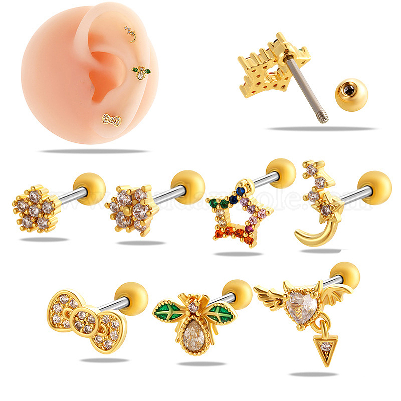 Серьги-гвоздики с микропаве из кубического циркония из латуни, 316l штифты из нержавеющей стали