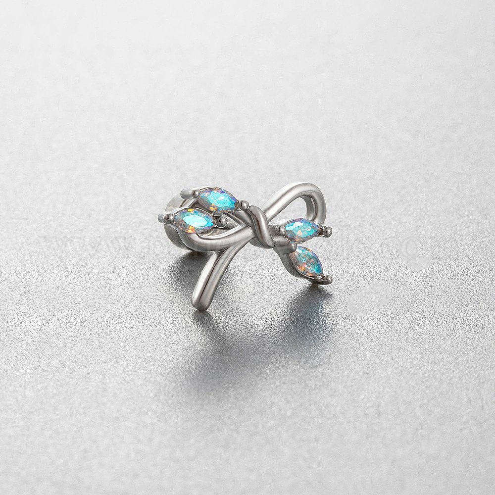 • Bowknot 316l хирургическая нержавеющая сталь паве светло-голубого цвета кубический цирконий хрящ серьги, цвет нержавеющей стали, бантом, 6 мм, штифты : 0.8 мм
