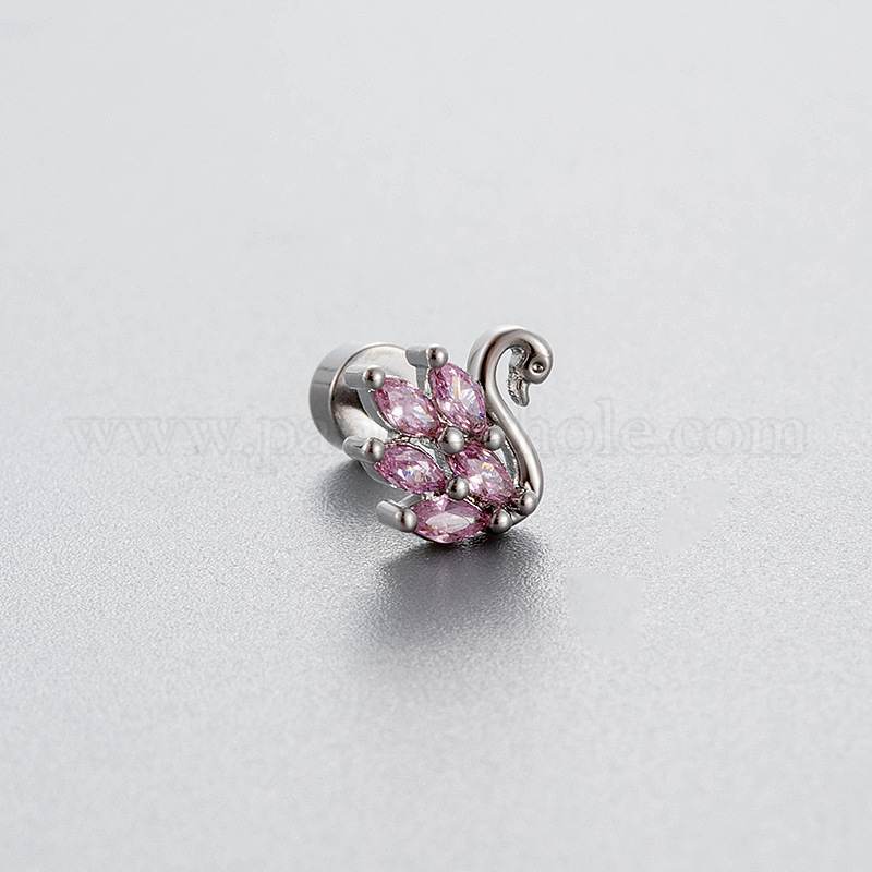 Серьги-гвоздики с розовыми кубическими цирконами из латуни, с 304 штифтов из нержавеющей стали, цвет нержавеющей стали