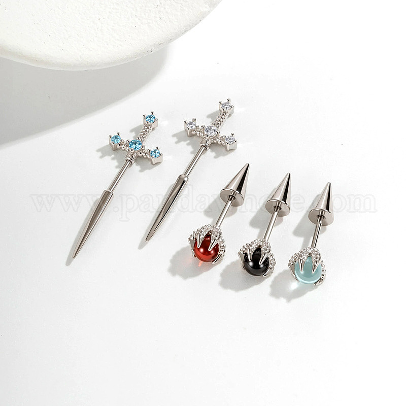 Серьги в виде когтя Грагона с шаровидным мечом, из латуни с кубическим цирконием, для хряща уха., с 304 штифтов из нержавеющей стали, платины и нержавеющая сталь цвет