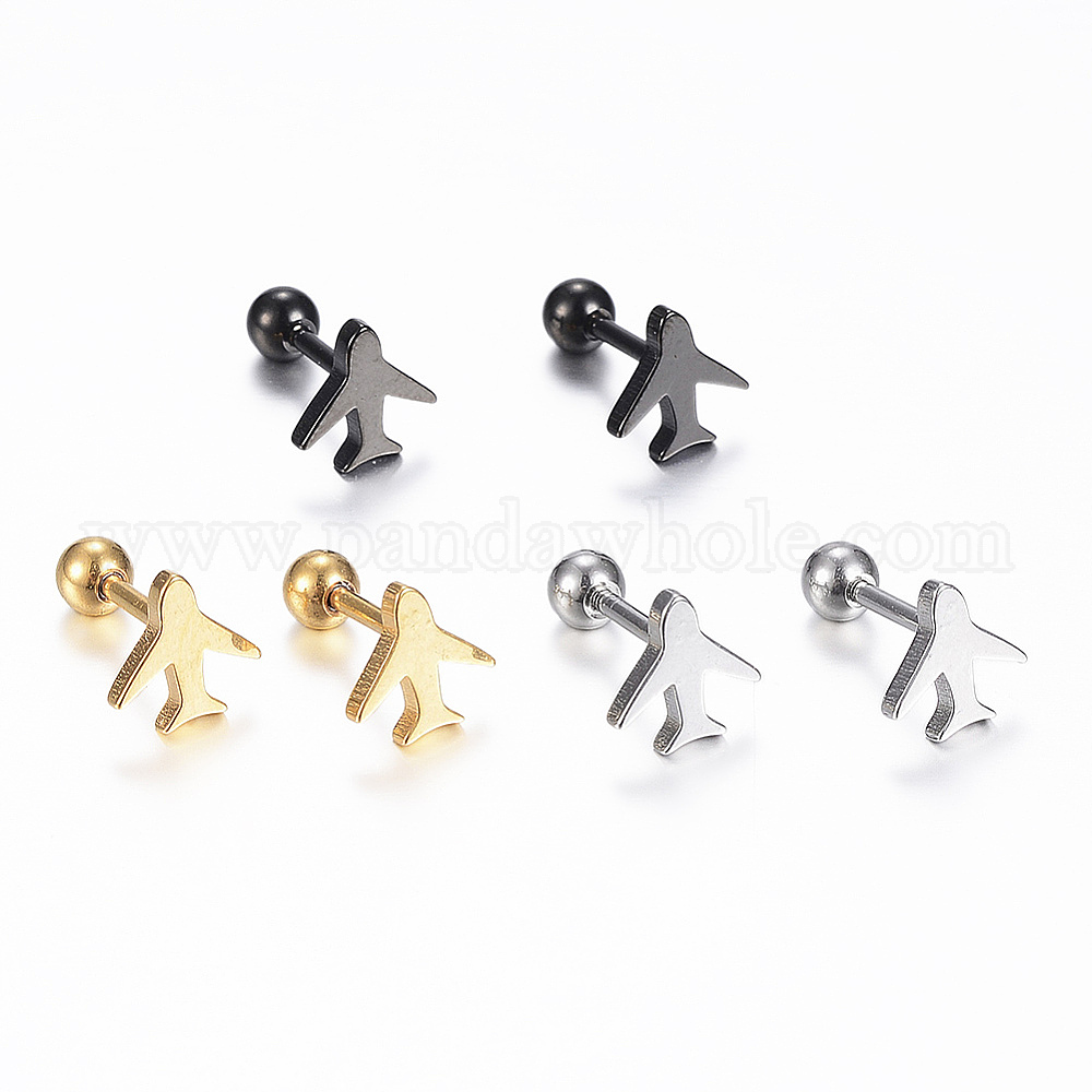 304 хрящевые серьги из нержавеющей стали, завинчивающиеся серьги, гипоаллергенные серьги, самолет
