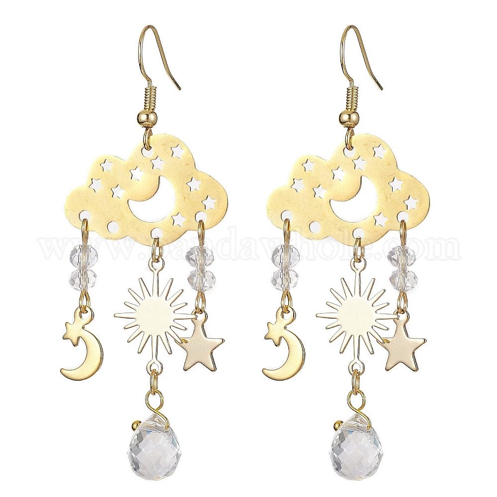201 серьги-люстры из нержавеющей стали с латунными штифтами, длинные серьги-капли из стекла
