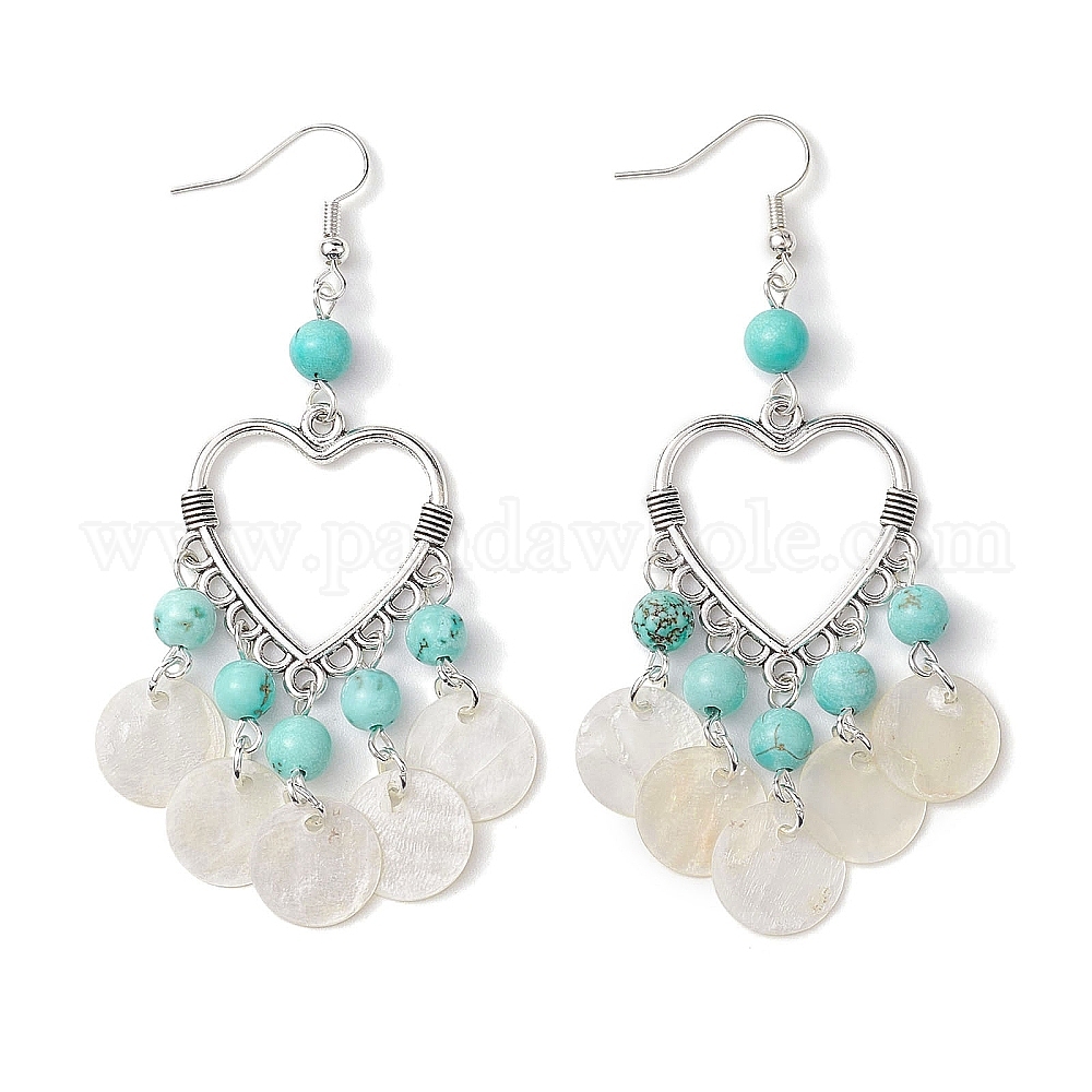Серьги-люстры в форме сердца с синтетической бирюзой и ракушками каписа, латунные серьги с подвесками для женщин