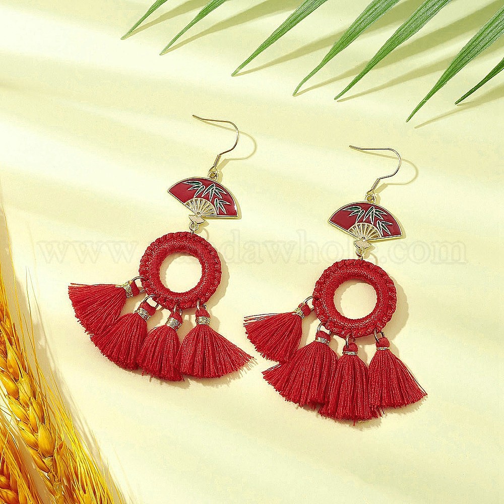 Серьги-люстры с кисточками из поликоттона для женщин, с 304 фурнитурой для сережек из нержавеющей стали, вентилятор