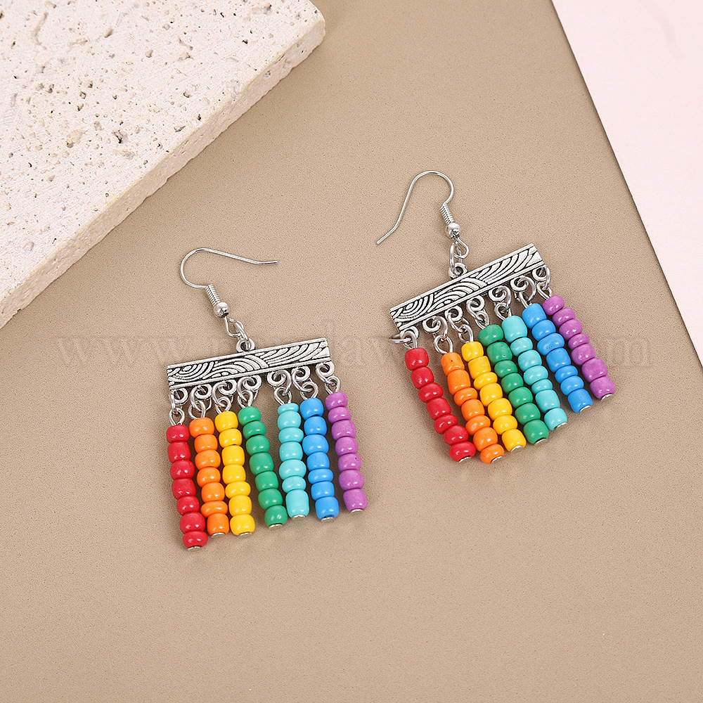 Серьги-люстры из пластика и сплава в стиле бохо, рондель