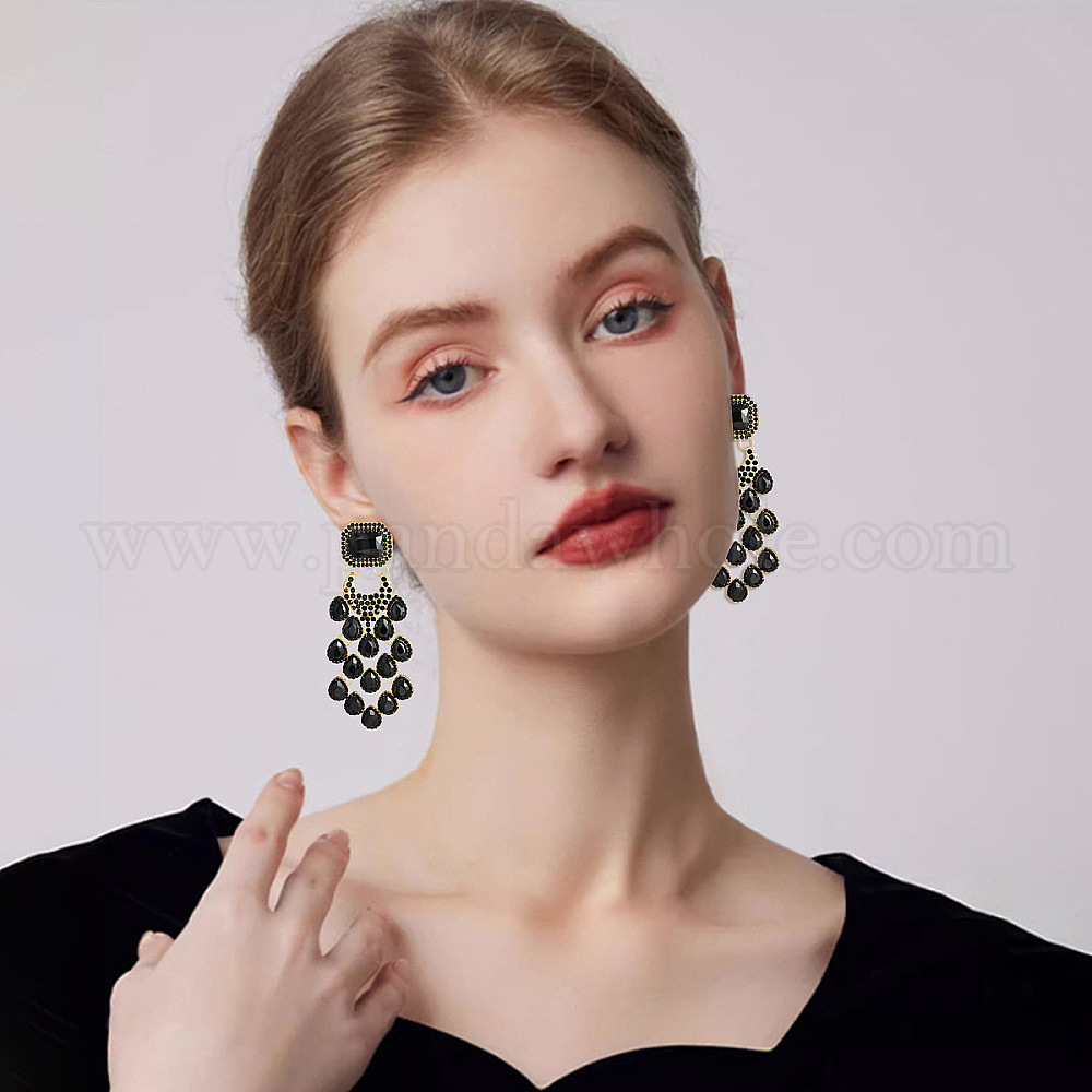 Серьги-люстры из сплава со стразами в форме капли и прямоугольника, золотые