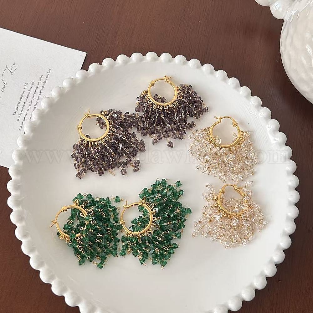Серьги-люстры с кисточками из латунных стеклянных бусин, золотые